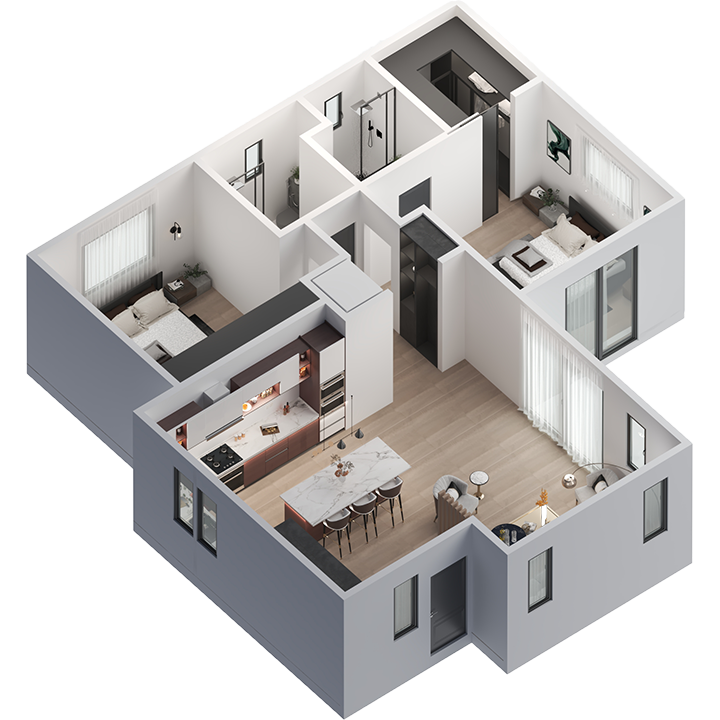 An Attached ADU is an extension of the main house, sharing at least one wall. This cost-effective option minimizes construction expenses by utilizing an existing structure. Ideal for properties with limited outdoor space, it allows easy access to the primary residence and is well-suited for multigenerational living or housing close family members.